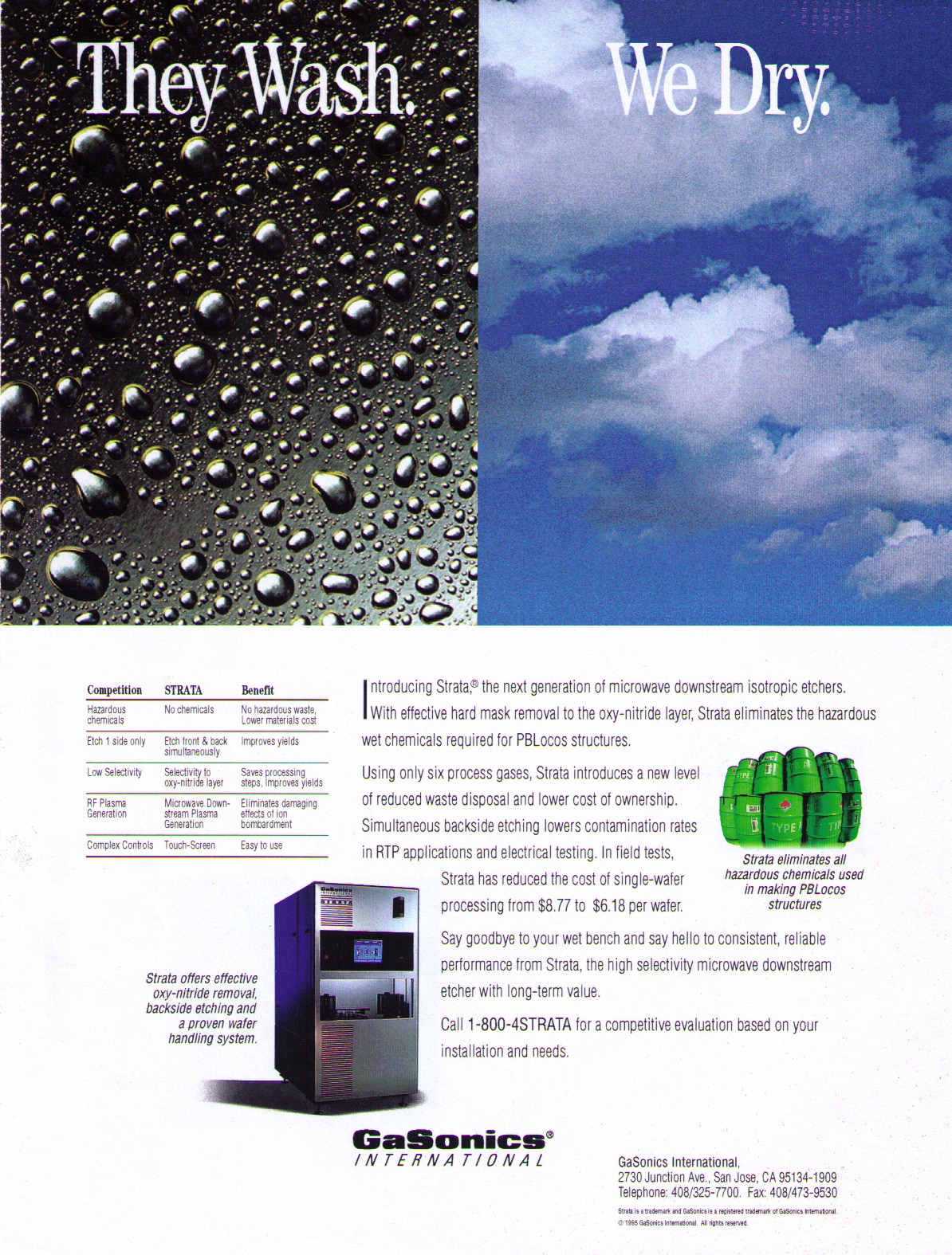 Gasonics was a leading manufacturer of automated wet bench technology, holding many patents for innovative advances, in this case an automated wet bench that was, in fact, dry. An early effort at “green” technology, the technique reduced the amount of hazardous chemicals used in finishing silicon wafers for market.