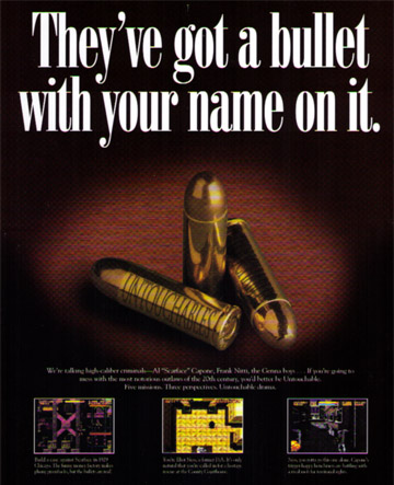 This ad gained some notoriety as its publication dove-tailed with an inquiry by the Joint Congressional Committee on Video Game Violence. An enlargement was trotted out in front of the committee as a prime example of violence in video game advertising. Yes, the headline portends violence. Yes, a parent could be shocked. But ask them about “The Untouchables” and the parents are likely to tell you Robert Stack was one of the original TV bad-asses, and they loved the series. You can share this sterling moment in Tim’s career and see how his headline caught the eye of the U.S. Congress via a Quicktime movie wherein Nintendo President Howard Lincoln apologizes to the congressional committee.